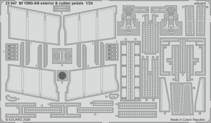 Parametry produktu  1:24 Bf 109G-5/6 exterior & rudder pedals /AFX