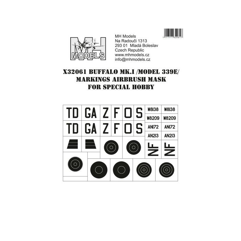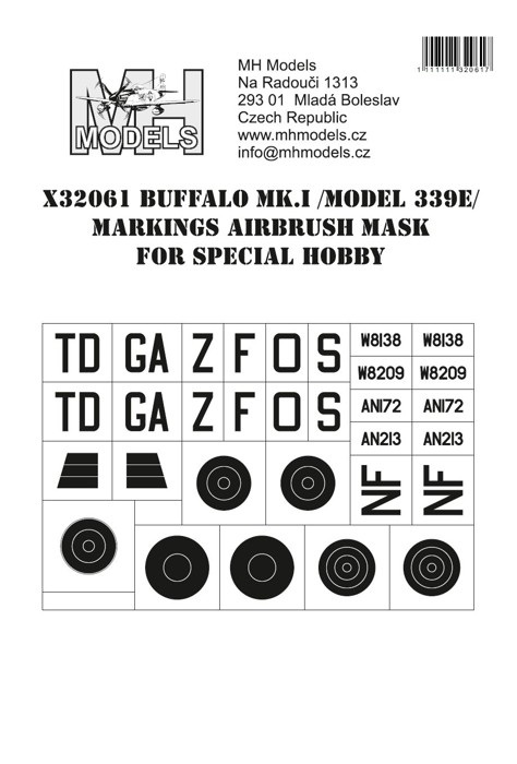 Parametry produktu  1:32 Buffalo Mk.I (model 339E) Markings airbrush mask /SPH
