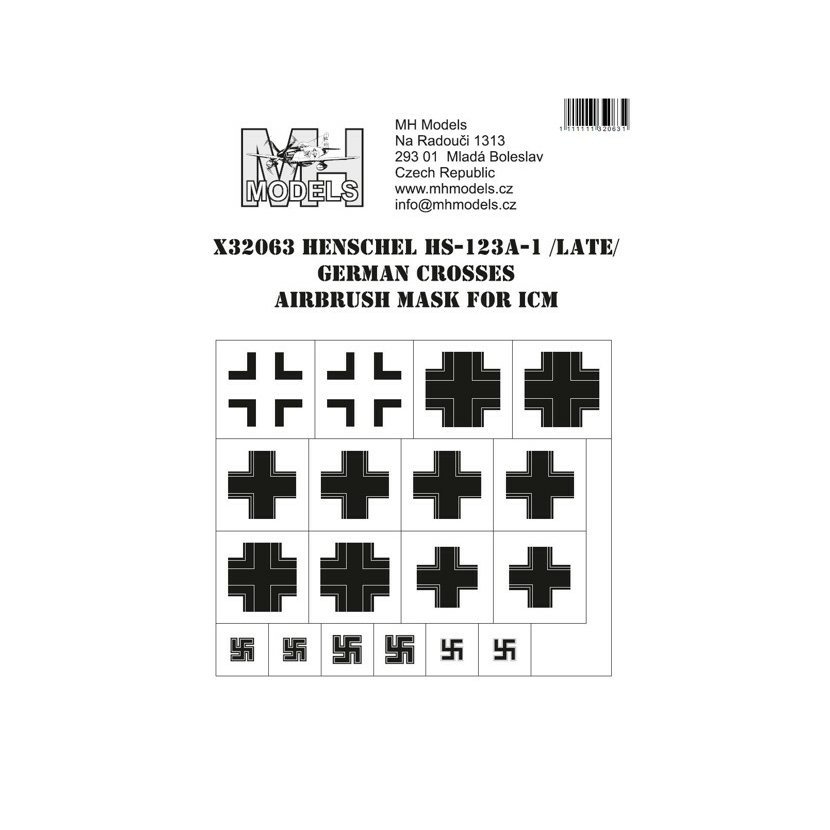 NázevHenschel Hs-123A-1 (Late) German Crosses airbrush mask /ICM