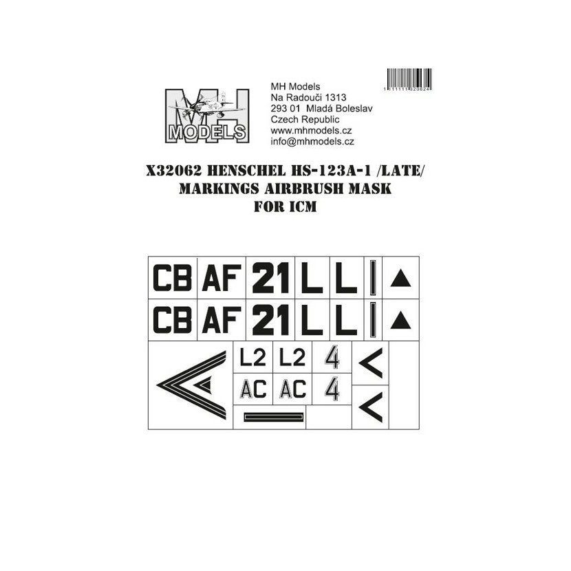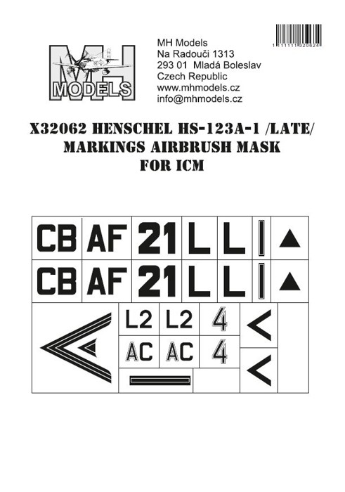 Parametry produktu  1:32 Henschel Hs-123A-1 (Late) Markings airbrush mask /ICM