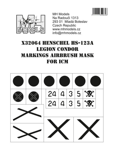 Parametry produktu  1:32 Henschel Hs-123A Legion Condor Markings airbrush mask /ICM