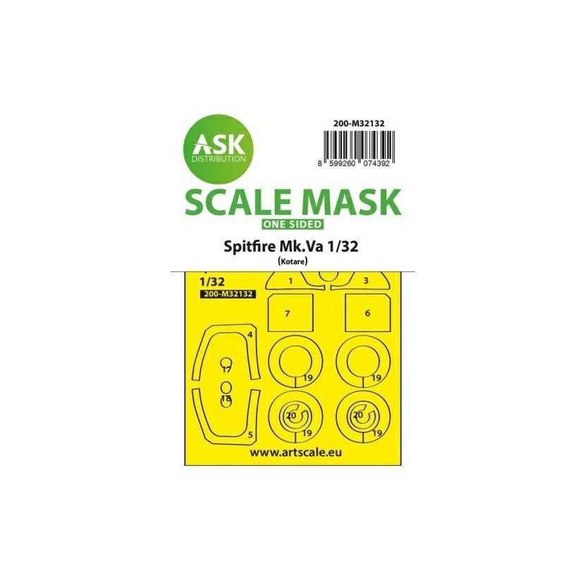 Parametry produktu  1:32 Spitfire Mk.Va one-sided express fit and self adhesive mask for Kotare