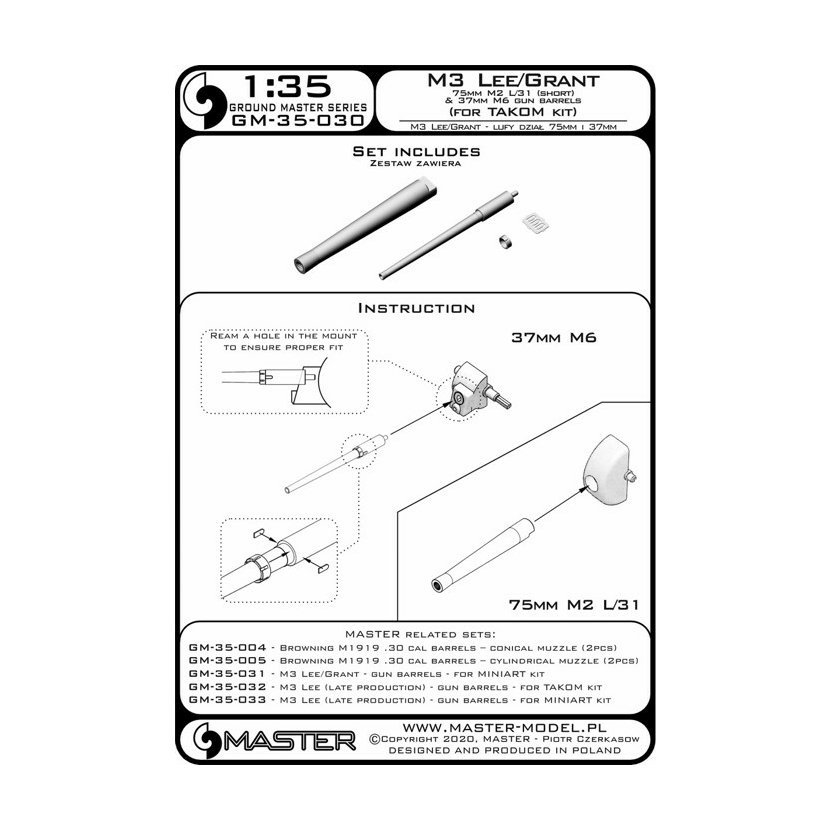 Parametry produktu  1:35 M3 Lee/ Grant 75mm M2 L/31 short /TKM