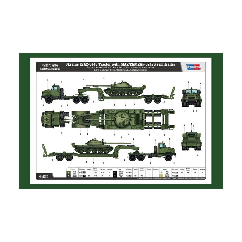 Parametry produktu  Hobby Boss 1:35 Ukraine KrAZ-6446 Tractor with MAZ/ChMZAP-5247G semitrailer