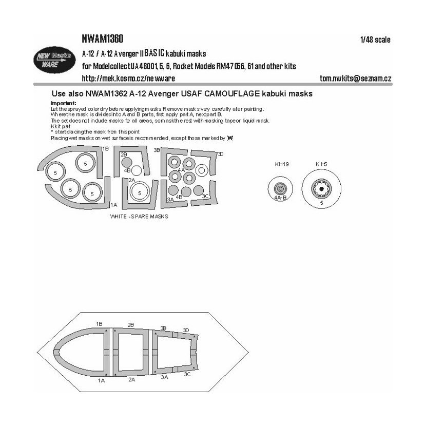 Parametry produktu  1:48 A-12 Avenger BASIC kabuki masks /MLC, ROCKET MODEL