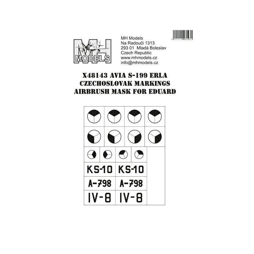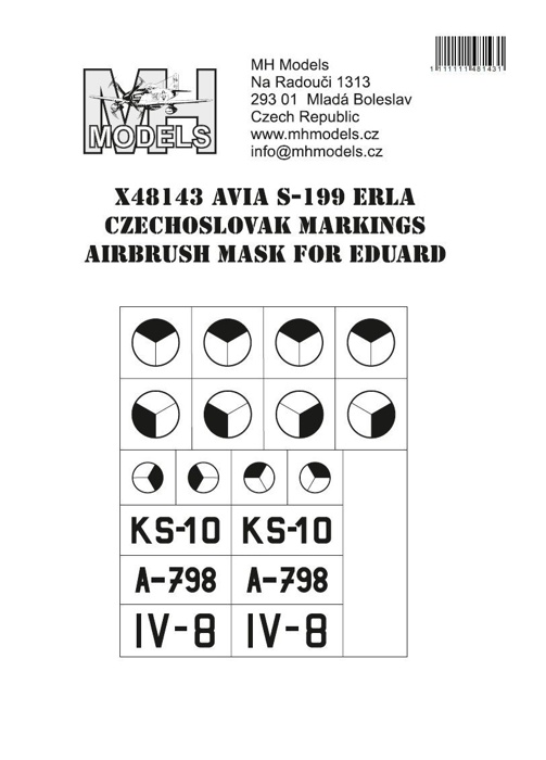 Parametry produktu  1:48 Avia S-199 Erla Czechoslovak markings airbrush mask for Eduard /EDU