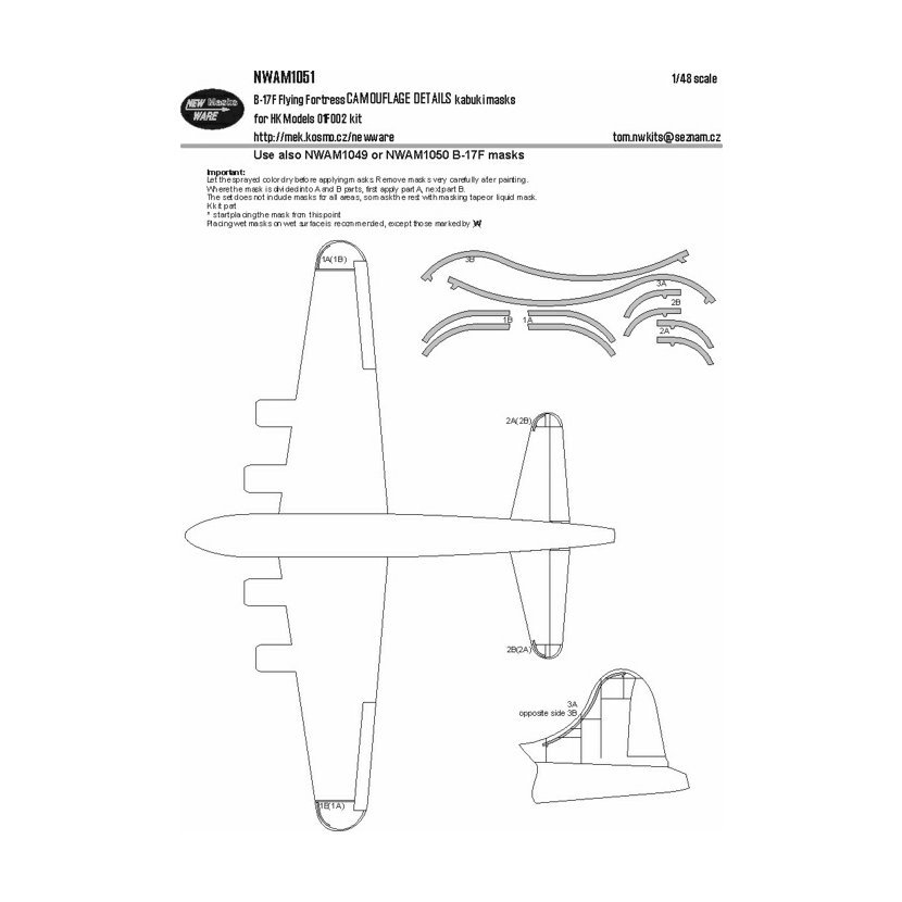 1:48 B-17F Flying Fortress CAMOUFLAGE DETAILS kabuki masks /HK Models