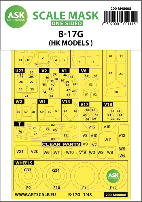 Parametry produktu  1:48 B-17G Flying Fortress outside painting mask /HK Models