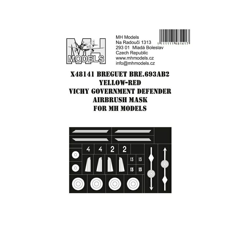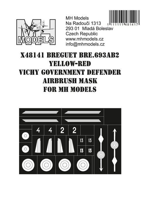Parametry produktu  1:48 Breguet Bre.693AB2 Red-Yellow striped Vichy Government defender airbrush mask for MH Models /MHS