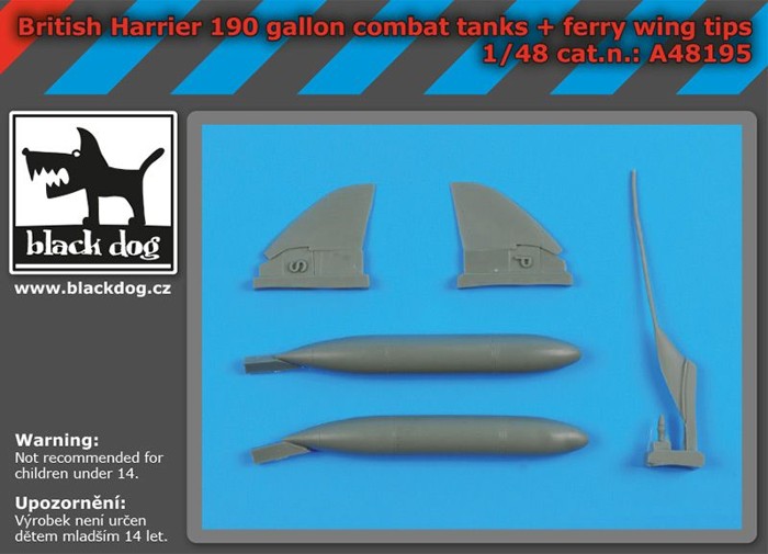 Parametry produktu  1:48 British Harrier 190 gallon combat tanks + ferry wing tips