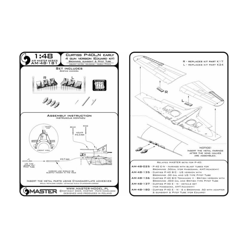 Parametry produktu  1:48 Curtiss P-40 L,N gunsight&P.Tube&Browning 0.5