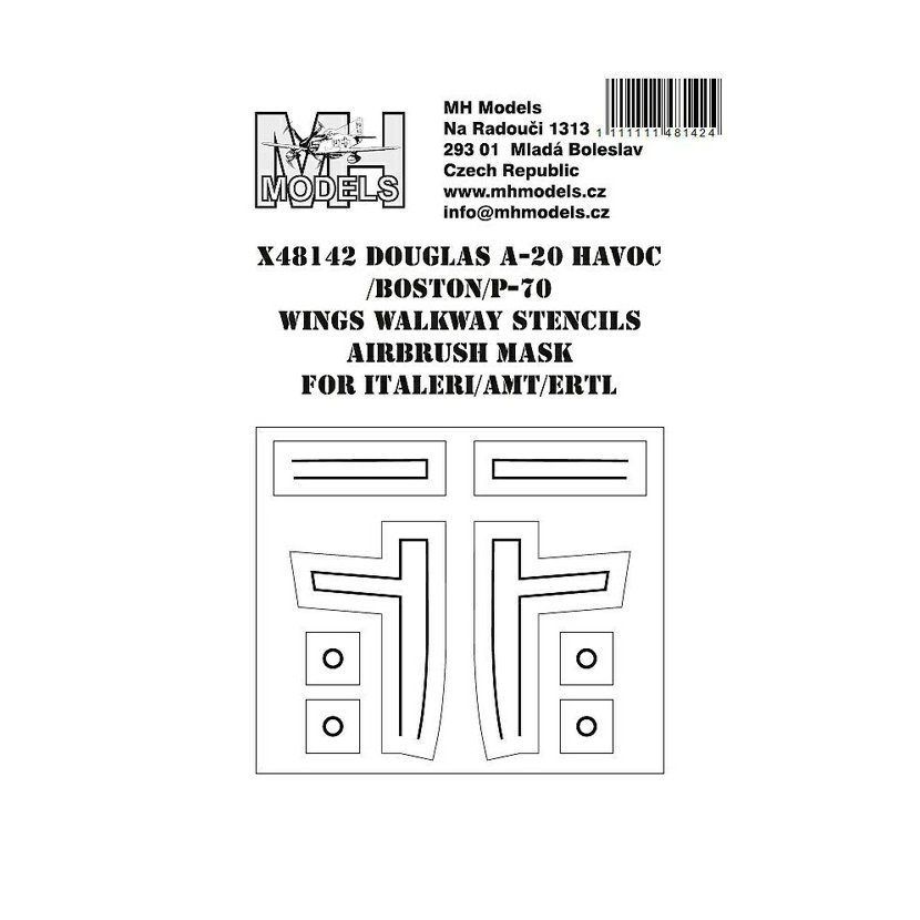 Parametry produktu  1:48 Douglas A-20 Havoc/Boston / P-70 wings walkway stencils airbrush mask for Italeri / AMT/ERTL /ITA