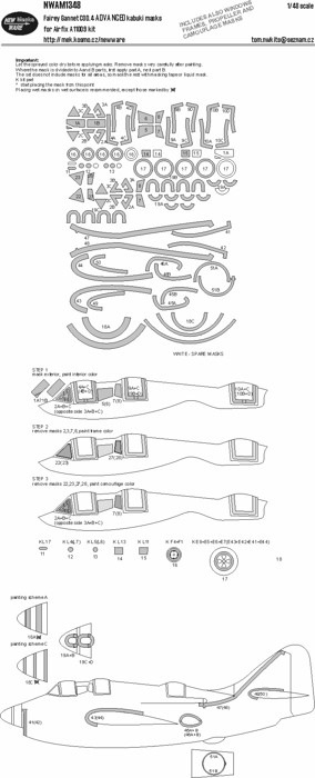 Parametry produktu  1:48 Fairey Gannet COD.4 ADVANCED kabuki masks /AFX