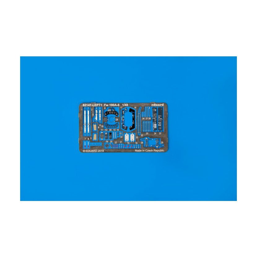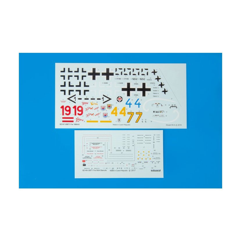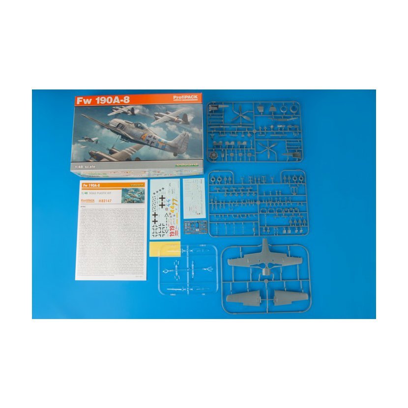 Stavebnice německého druhoválečného stíhacího letounu Fw 190A-8 v měřítku 1/48; edice ProfiPACK. Plastové díly: Eduard- počet kamuflážních schémat: 5- obtisky: Eduard- leptané díly: ano, barvené- maska: ano- resinové díly: ne