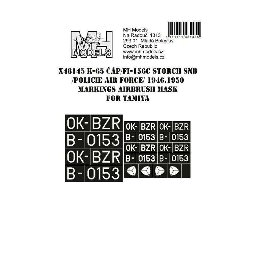 1:48 K-65 Čáp/Fi-156C Storch SNB (Police Air Force) 1946-1950 Markings Airbrush Mask for Tamiya /TAM