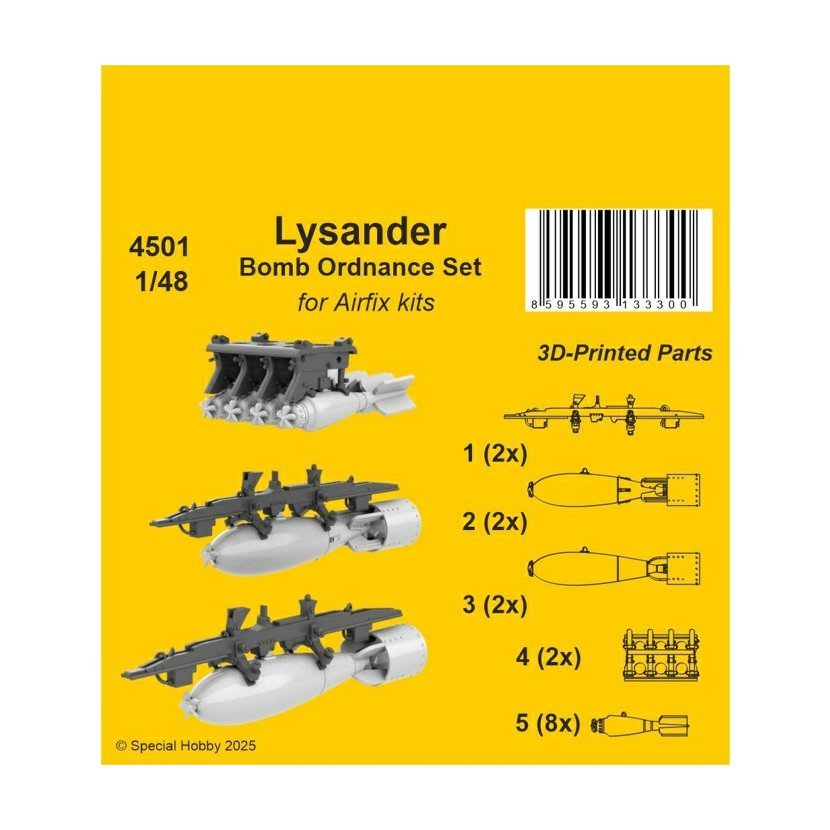 Tato sada nabízí univerzální závěsníky pro 250librové (cca 133 kg) univerzální pumy (verze Mk.I/III i Mk.IV), plus menší závěsníky typu Light Series Bomb Carrier s osmi 20librovými (10 kg) tříštivými pumami. Určeno pro model Lysander od firmy Airfix.