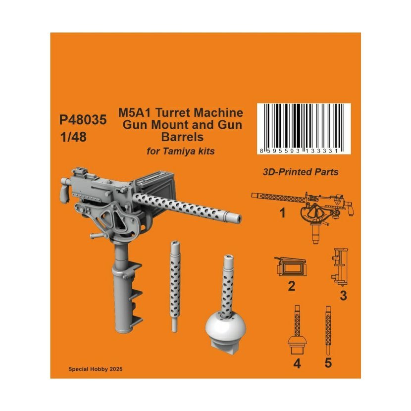 1:48 M5A1 Turret Machine Gun Mount and Gun Barrels /TAM