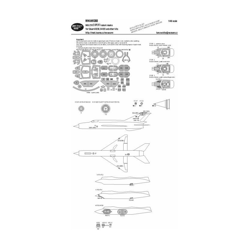Parametry produktu  1:48 MiG-21R EXPERT kabuki masks /EDU