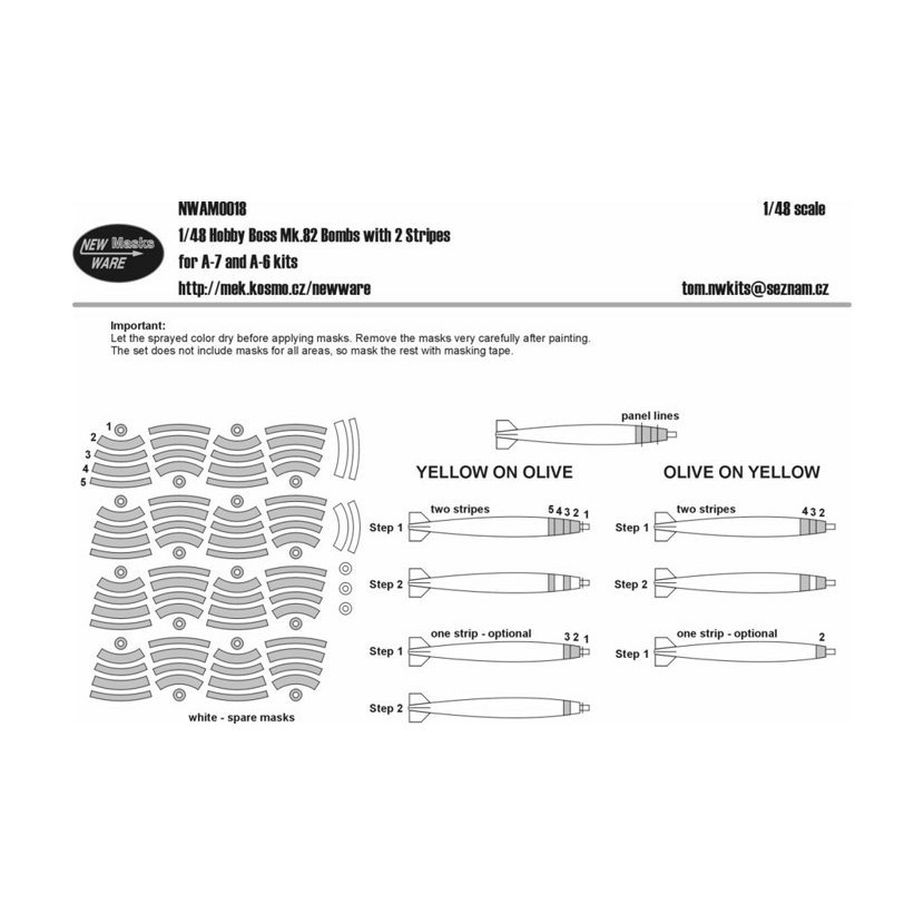 Parametry produktu  1:48 Mk.82 bombs with 2 stripes for A-6 and A-7 Kits /HBB