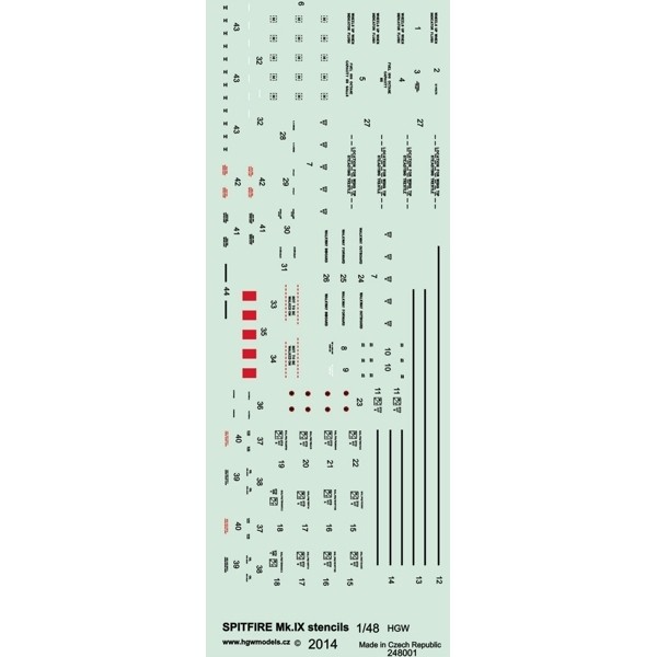 1:48 Spitfire Mk.IX Stencils (wet transfers)