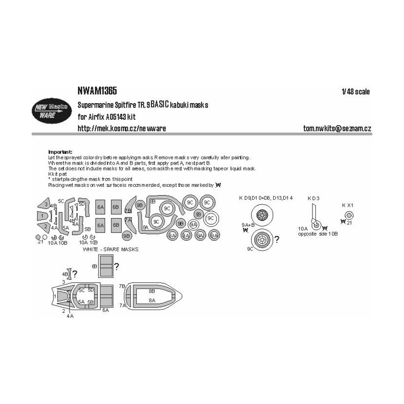 Parametry produktu  1:48 Supermarine Spitfire TR.9 BASIC kabuki masks /AFX