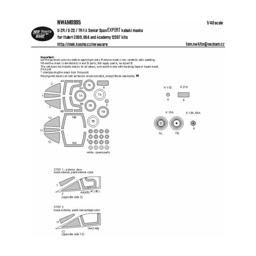 Parametry produktu  1:48 U-2R / U-2S / TR-1A Senior Span EXPERT kabuki masks /ITA,ACD