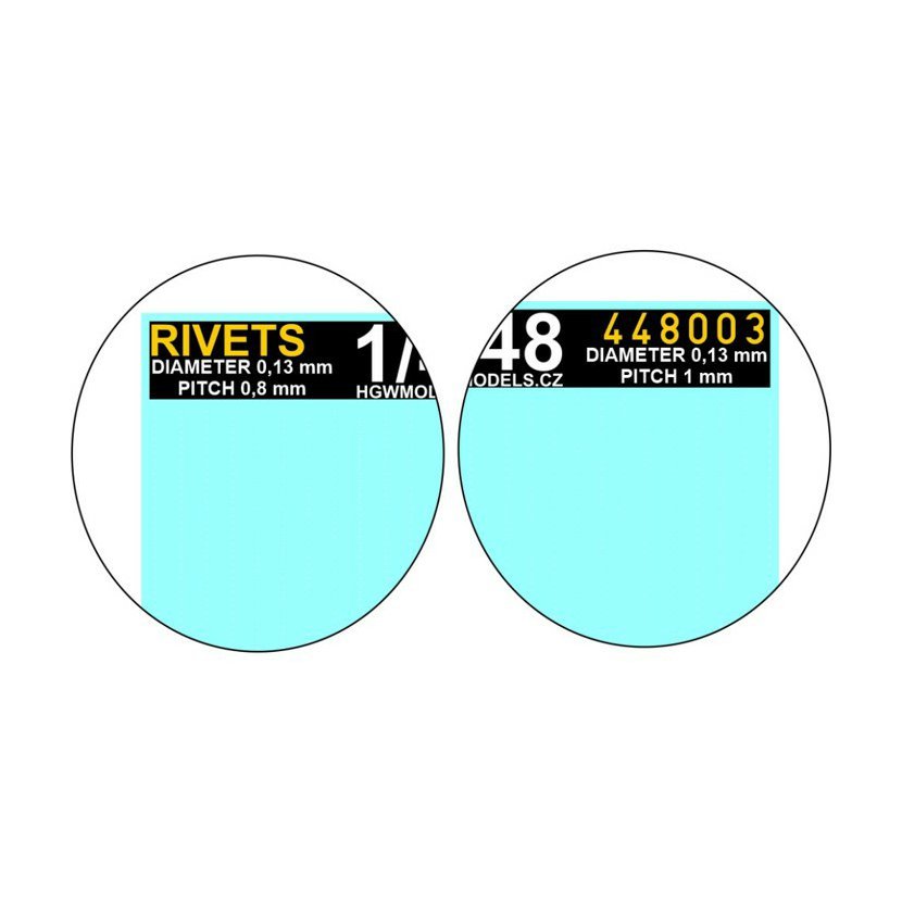 Sada volných řad pozitivních nýtů v měřítku 1/48. Nýtovací sety od HGW Models dodávají povrchům plastových modelů mnohem realističtější vzhled. Doporučujeme nanášet je pod barvu a po nabarvení se k nim proleštit.