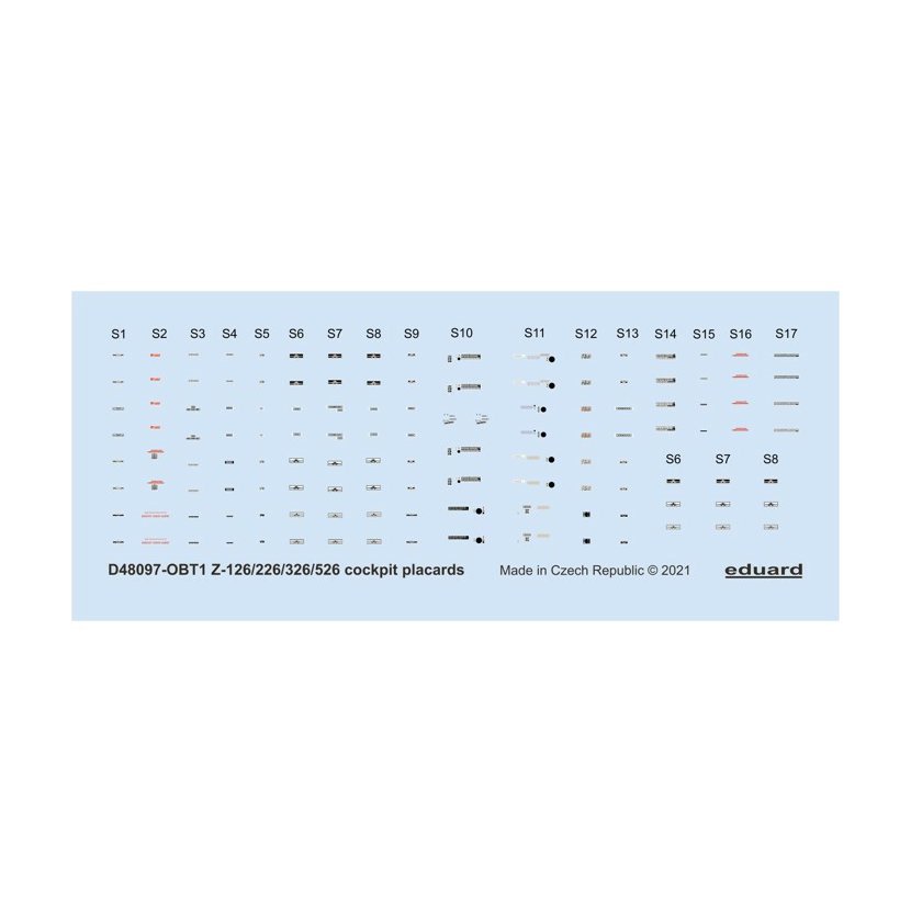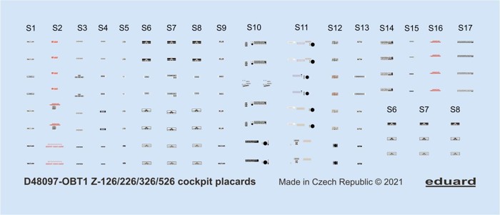 Parametry produktu  1:48 Z-126/226/326/526 cockpit placards /EDU