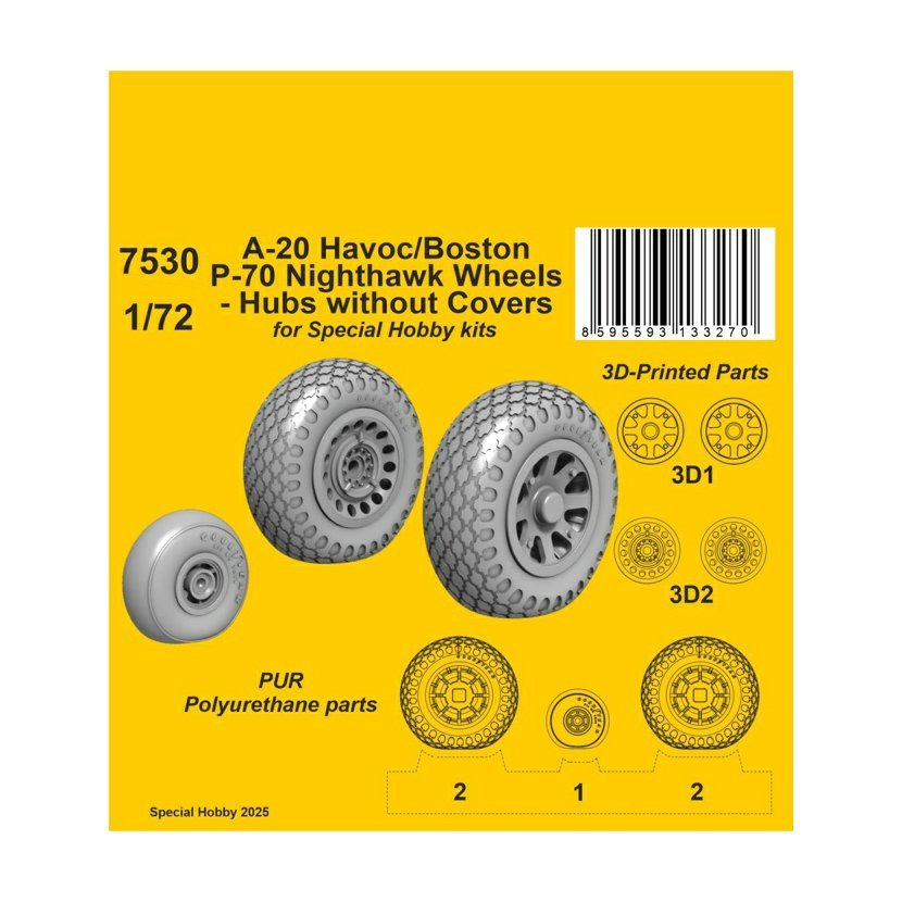Parametry produktu  1:72 A-20 Havoc/Boston/ P-70 Nighthawk Wheels/ Hubs without Covers /SPH