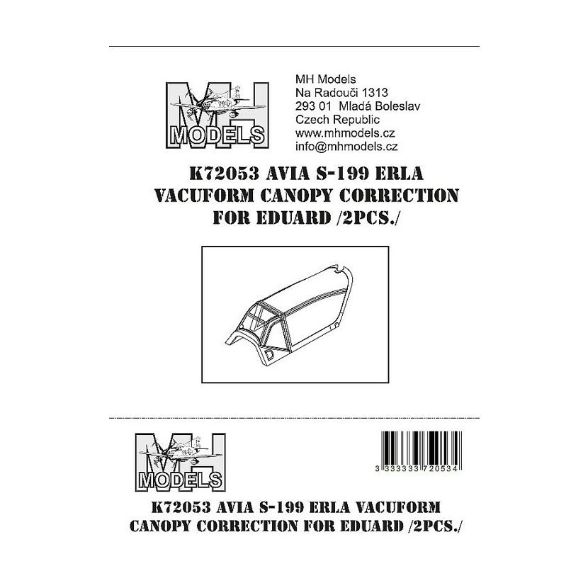 Parametry produktu  1:72 Avia S-199 Erla vacuform canopy correction set for Eduard closed version 2pcs. /EDU