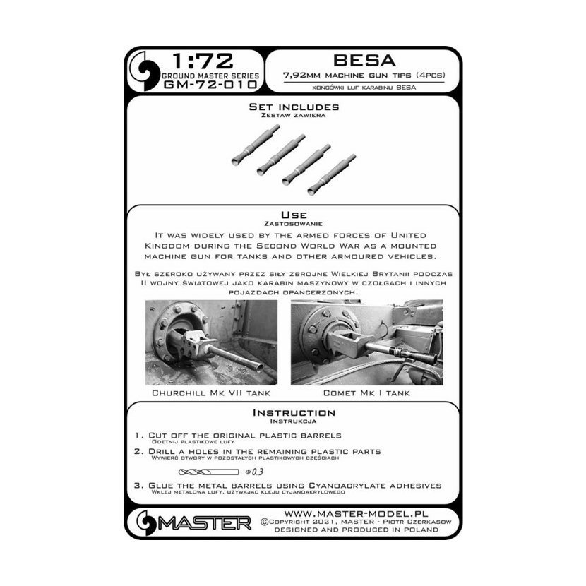 Parametry produktu  1:72 BESA 7,92 mm Machine gun tips