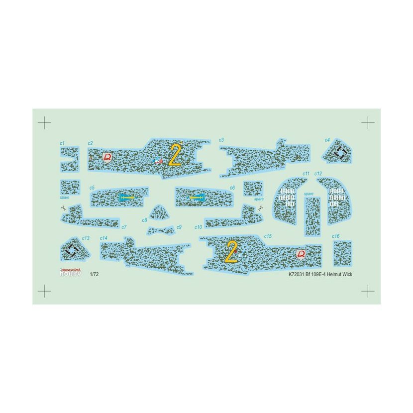 Parametry produktu  1:72 Bf 109E-4 German Ace H. Wick Stipple Camouflage Scheme