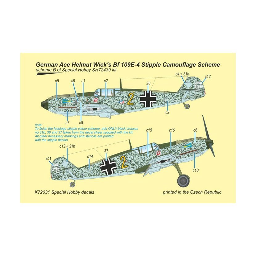 1:72 Bf 109E-4 German Ace H. Wick Stipple Camouflage Scheme