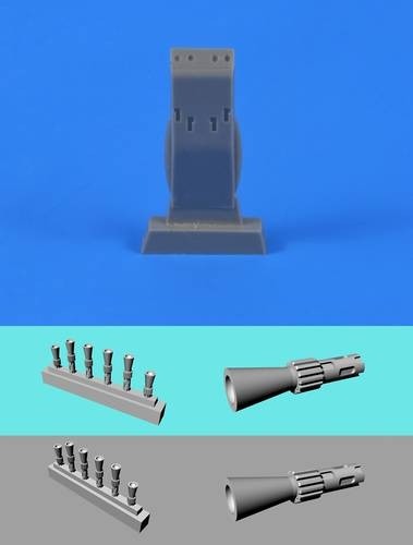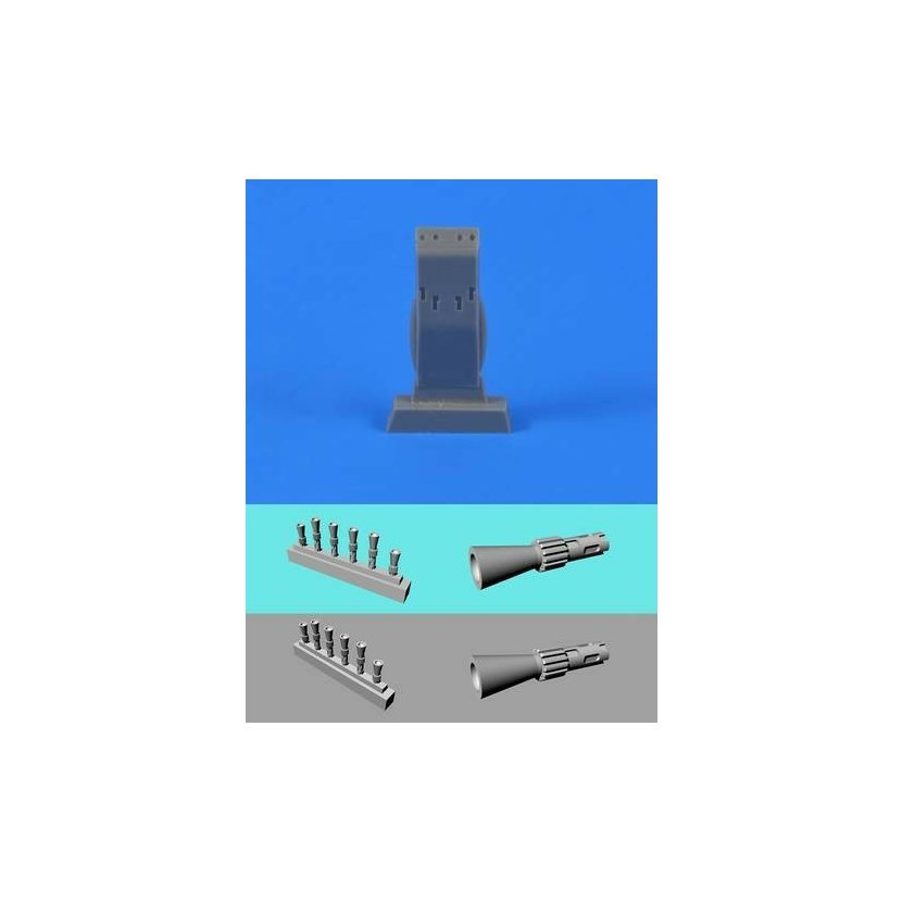 Detailní odlévaná sada nabízí přesný podvěs se čtyřmi kulomety umístěný pod trupem letounu.