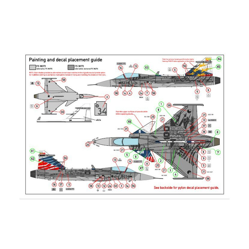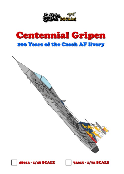 Obsahuje obtisky pro stroj 9234 100 lete letectva + Tiger Meet 2018 ze sady Czech Gripens: Fighters, sítotiskem tištěné obtisky motivů na křídlech a trupu a laserovou tiskárnou tištěné obtisky na hrb, kachní plochy a směrovku.