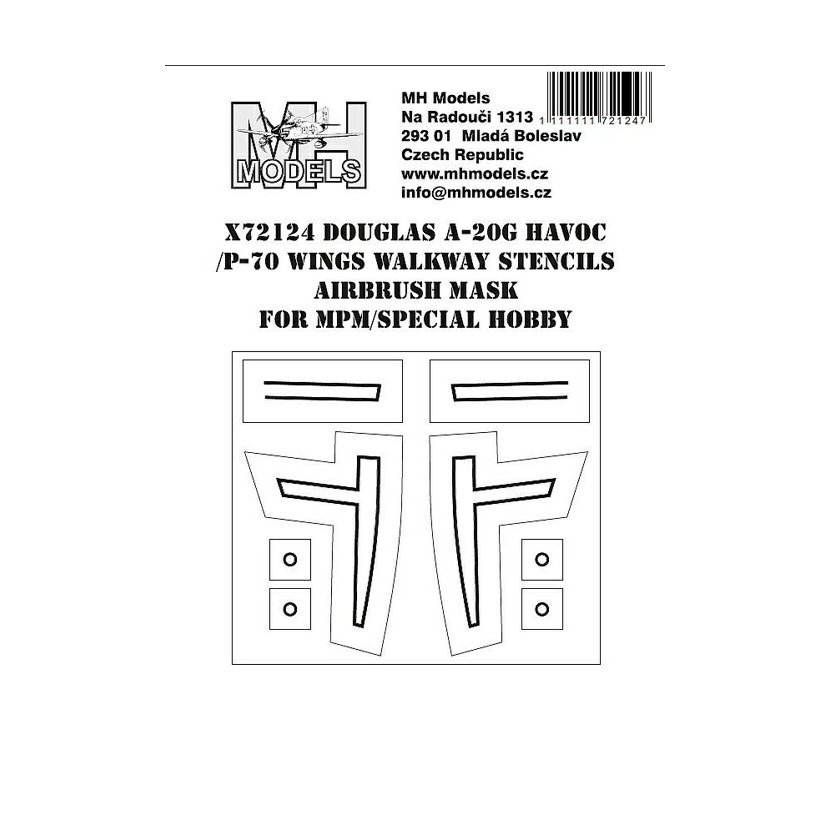 Parametry produktu  1:72 Douglas A-20G Havoc / P-70 wings walkway stencils airbrush mask for/MPM,SPH