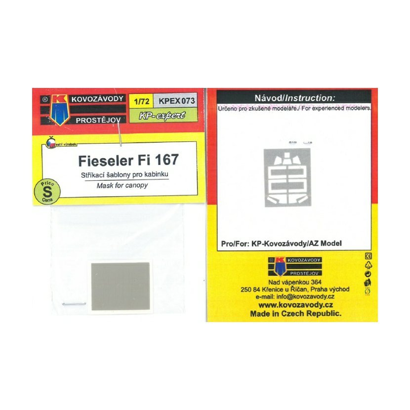 Parametry produktu  1:72 Fieseler Fi 167 mask for canopy /KP,AZ