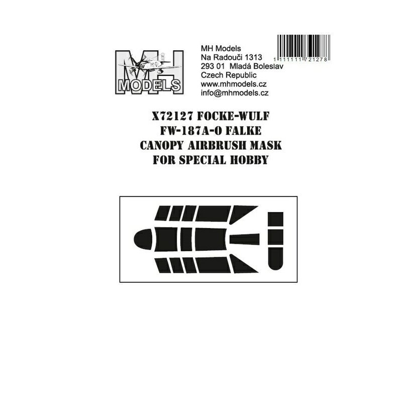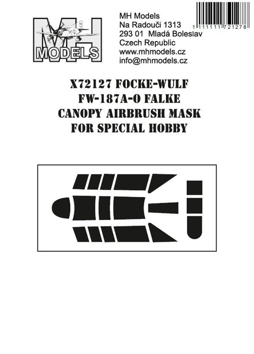 Parametry produktu  1:72 Focke-Wulf Fw-187A-0 Falke canopy airbrush mask /SPH