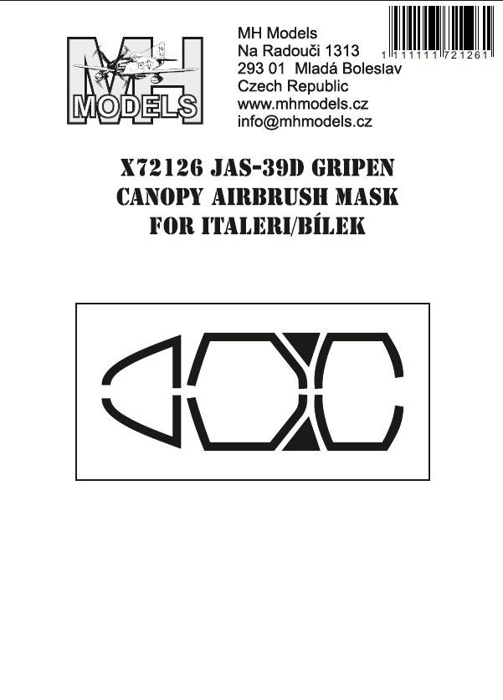 NázevJAS-39D Gripen canopy airbrush mask /ITA,BIL