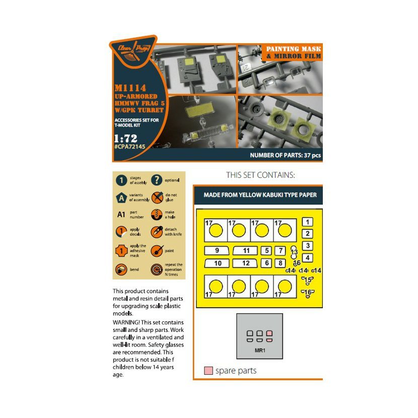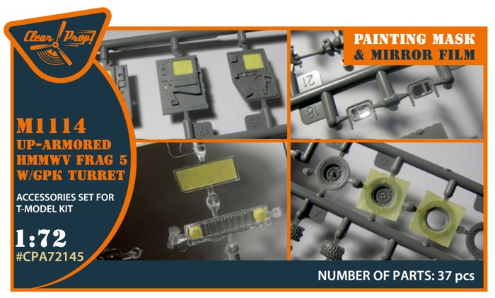 Parametry produktu  1:72 M1114 Up-armored HMMWV Frag 5 W/GPK p.mask