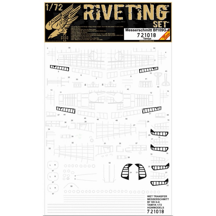 Parametry produktu  1:72 Messerschmitt Bf 109G-6 nýtovací sada /TAM