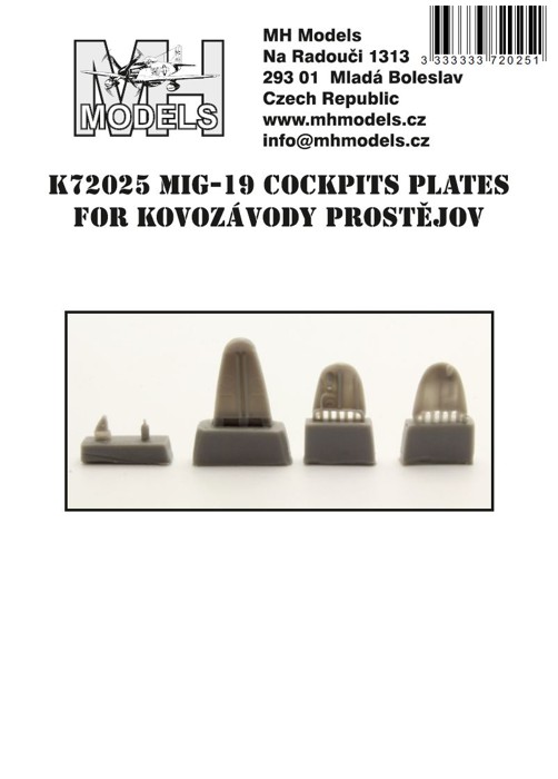 Parametry produktu  1:72 Mig-19 cockpits plates /KVP