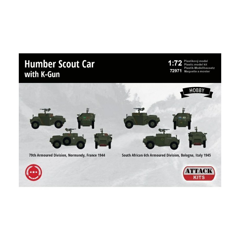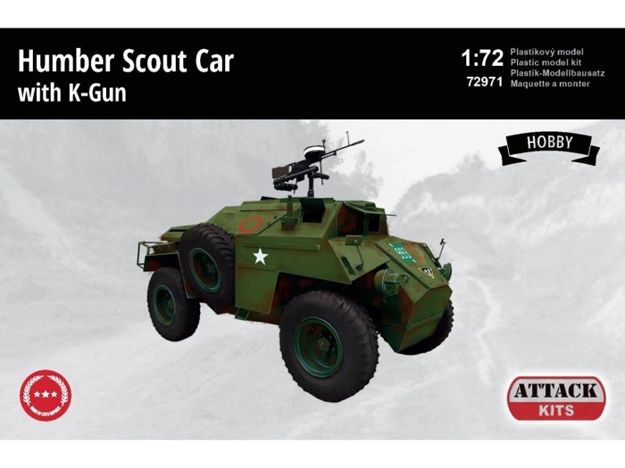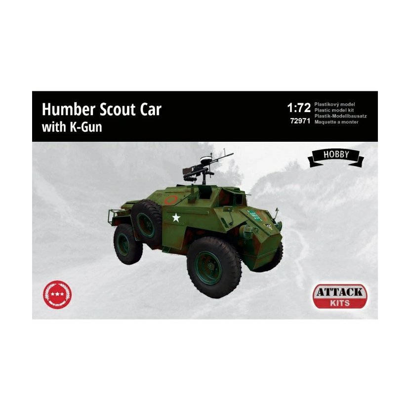 Parametry produktu  Attack 1:72 Humber Scout Car with K-Gun (Hobby)