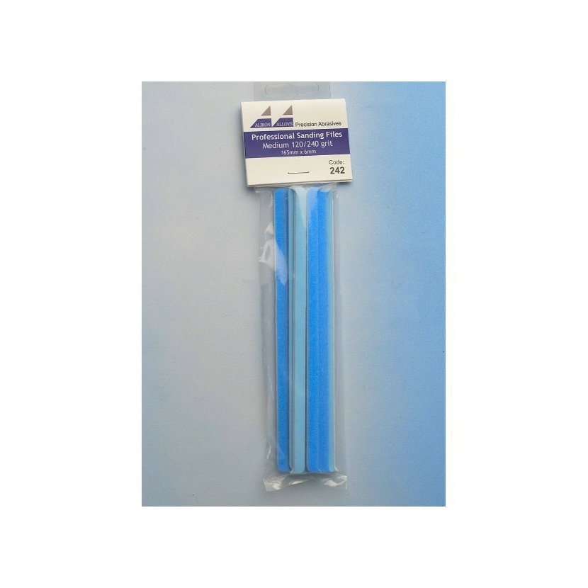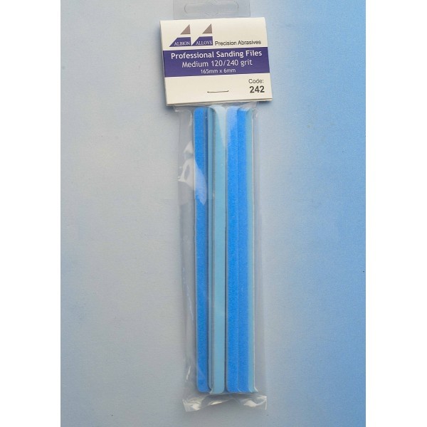Parametry produktu  Brusné pilníky úzké (6 mm) středně hrubé (modré) - hrubost 120/240, 10 ks