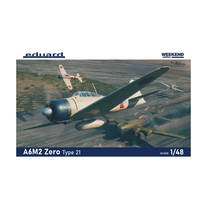 Stavebnice japonské námořní druhoválečné stíhačky A6M2 Zero Model 21; edice Weekend v měřítku 1/48. - plastové díly: Eduard- počet kamuflážních schémat: 4- obtisky: Eduard- leptané díly: ne- maska: ne- resinové díly: ne