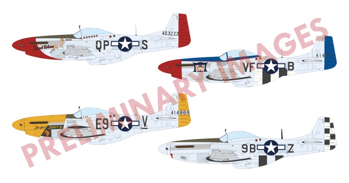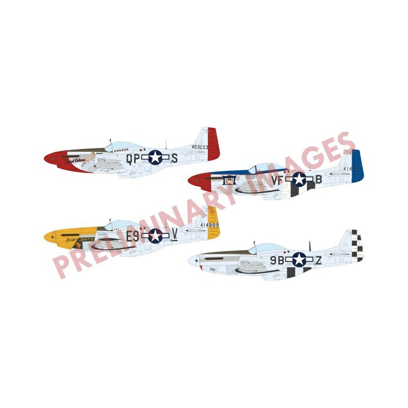 Stavebnice amerického druhoválečného stíhacího letounu P-51D Mustang v měřítku 1/48; edice Limited Edition.Stavebnice nabízí Mustangy létající u 4th FG, 355th FG, 361st FG a 479th FG. Plastové díly: Eduard- počet kamuflážních schémat: 13
