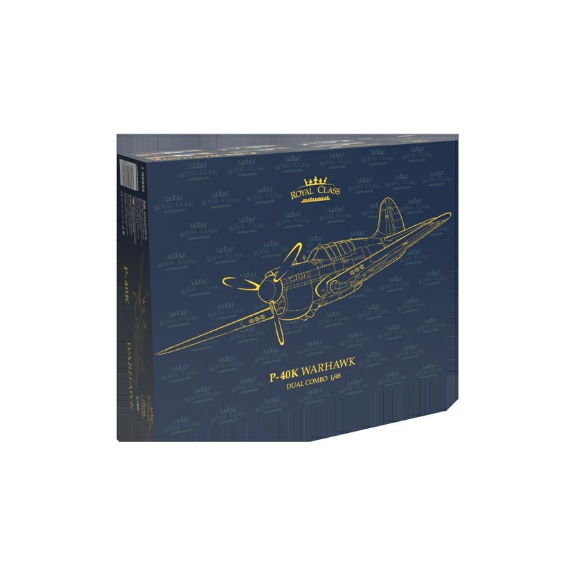 Stavebnice amerického druhoválečného stíhacího letounu P-40K Warhawk s krátkým ocasem v měřítku 1/48; edice Royal Class. Stavebnice nabízí 8 markingů. Stavebnice obsahuje plastové rámečky pro dvě P-40K, z nichž je možné postavit stíhačky sloužící u USAAF, RAF, SAAF.