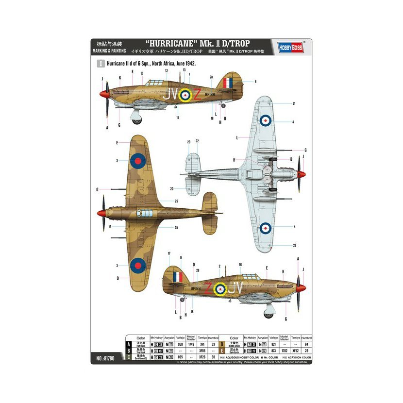 Parametry produktu  Hobby Boss 1:48 Hurricane Mk. II D/TROP