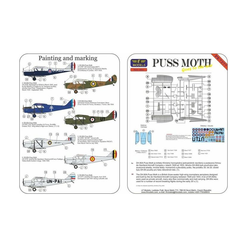 Parametry produktu  LF models 1:72 DH 80A Puss Moth 'Goes to the war'