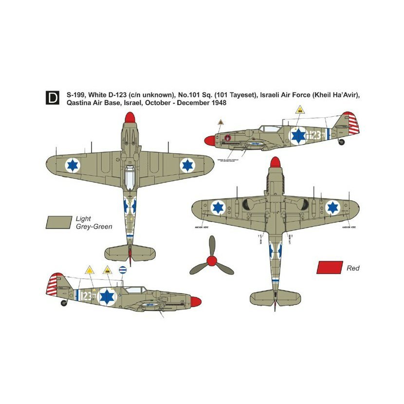 S-199, bílá D-123 ((neznámé výr. č.), 101. peruť (tajeset), izraelské vojenské letectvo (Kheil Ha'Avir), základna Kastina, Izrael, říjen – prosinec 1948